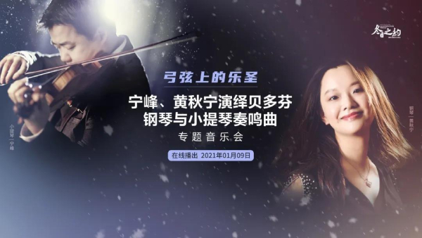 2021年1月9日晚,国家大剧院线上系列之“弓弦上的乐圣:贝多芬钢琴与小提琴奏鸣曲专题音乐会”在国家大剧院为大家呈现一场云端盛宴。 音乐会由小提琴家宁峰携手留美青年钢琴演奏家黄秋宁,为线上乐迷呈现贝多芬的第一、二、四、八号钢琴与小提琴奏鸣曲,一把小提琴搭配一架钢琴,奏出娓娓动人的旋律,带领大家开启向“乐圣”致敬的音乐之旅。 来源:国家大剧院