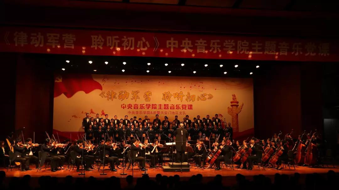 6月26日,在党的98岁华诞即将来临之际,中央音乐学院联合武警北京总队天安门地区支队在国家博物馆剧场举办了一堂精彩的《律动军营 聆听初心》主题音乐党课。 校长俞峰教授携中央音乐学院交响乐团、中央音乐学院合唱团,特邀著名歌唱家阎维文、王宏伟、黄华丽、王传越倾情出演,为守卫天安门的武警基层官兵奉献一场红色经典音乐盛宴。 来源:中央音乐学院