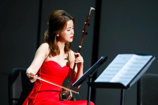 2月5日晚,凯迪拉克·上海音乐厅迎来了二胡演奏家陆轶文与东海岸弦乐四重奏。恰逢新春佳节,陆轶文身着一席红色长裙出场,增添一抹喜庆的氛围。