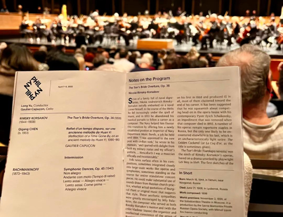 音乐会演出的曲目包括里姆斯基·科萨科夫歌剧《沙皇的新娘》序曲以及谢尔盖·拉赫玛尼诺夫的《交响舞曲》,当然重头戏是上半场由法国大提琴家戈蒂埃·卡普颂(Gautier Capuçon)担任独奏演奏陈其钢的《逝去的时光》。