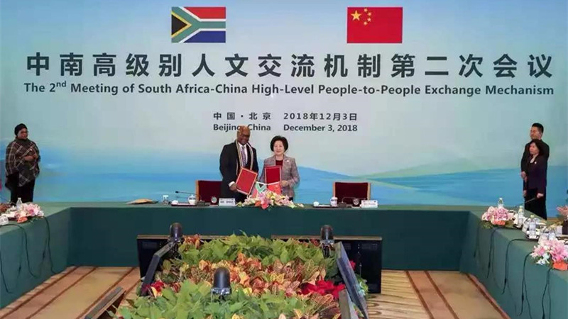 2018年12月3日,国务院副总理、中南高级别人文交流机制中方主席孙春兰在北京钓鱼台和南非艺术与文化部部长、机制南方主席姆特特瓦共同主持中南高级别人文交流机制第二次会议。为突显中南两国深厚友谊、展示中国民族音乐灿烂文化,中华人民共和国教育部国际交流司特邀请中央音乐学院参与会议文艺演出。