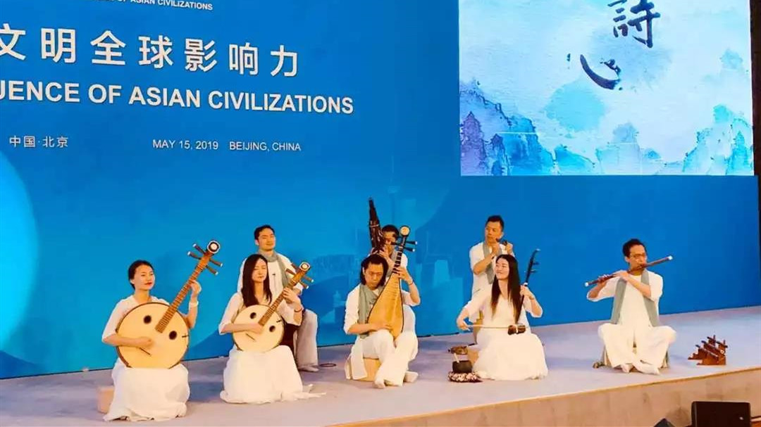 5月15日下午在北京国家会议中心成功举行亚洲文明对话大会平行分论坛之一——“亚洲文明影响力”论坛开幕演出。上海民族乐团的九位演奏家与来自泰国、哈萨克斯坦、菲律宾、印度、黎巴嫩和中国等六个亚洲国家的表演者一道,共同为与会嘉宾带来以“诗乐会友”为主题的开幕演出。 来源:上海民族乐团