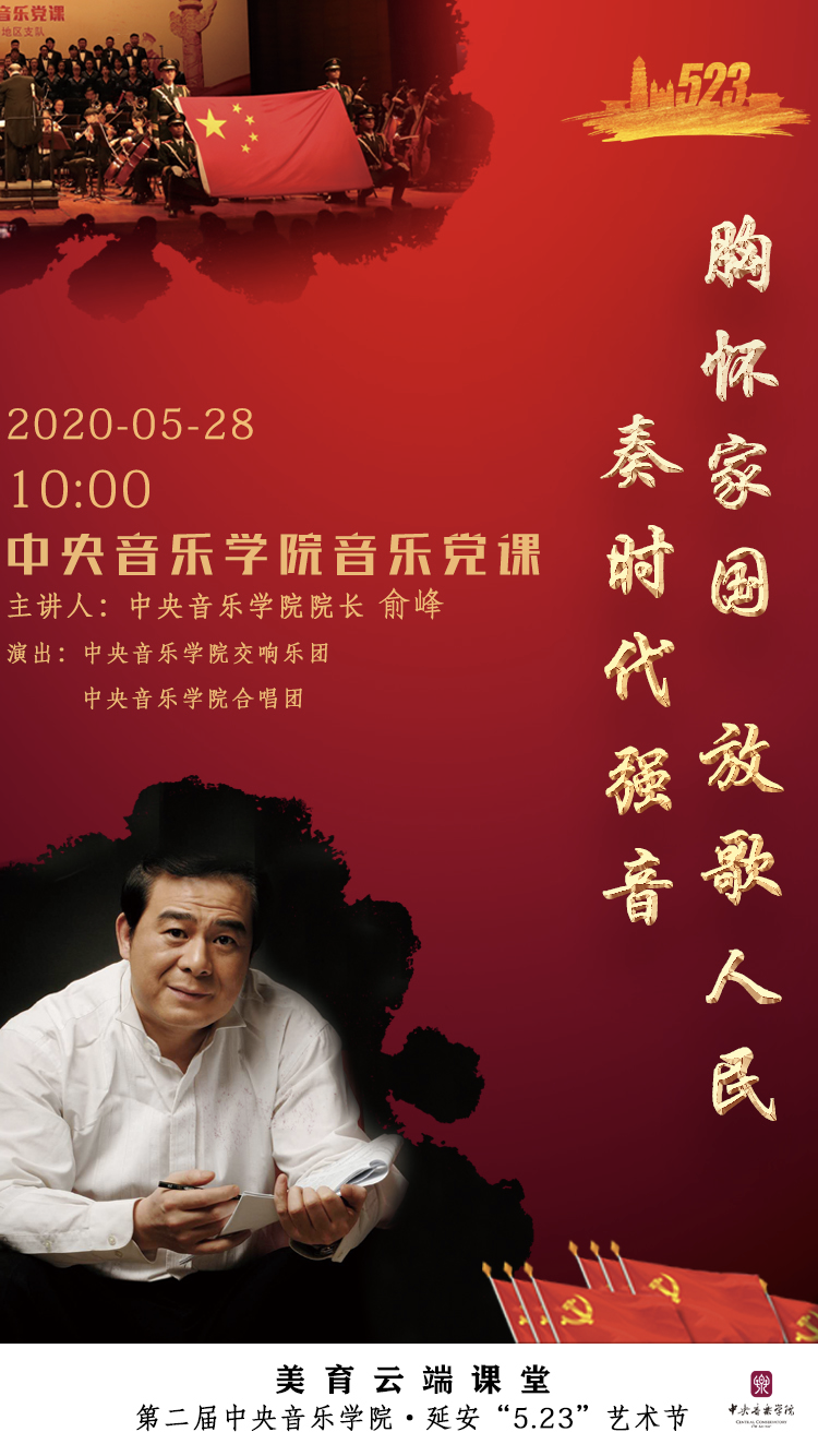 “胸怀家国、放歌人民、奏时代强音” 中央音乐学院延安音乐党课“云开讲” 日期:2020-05-29 / 浏览:836次 / 作者:管理员 5月28日上午,一场别开生面的音乐党课《胸怀家国,放歌人民,奏时代强音》在中央音乐学院·延安5.23艺术节的最后一天,由央音院长俞峰在网上开讲。 来源:音乐周报 上一篇:← 下一篇:→